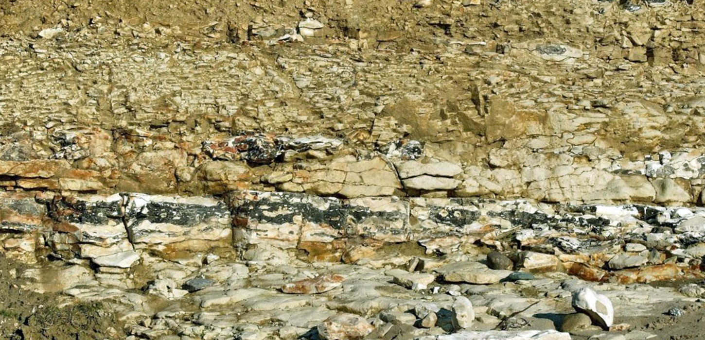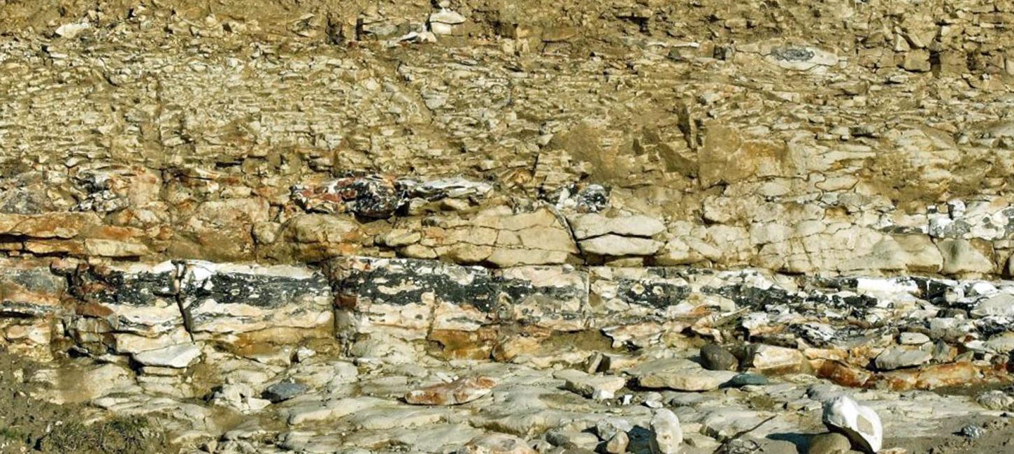 Kystklint med blottede kalk- og flintlag fra Danien og 3 istider