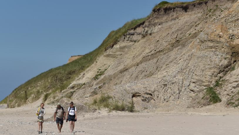 Ved Bovbjerg Klint, et internationalt "geosite", ses et tværsnit gennem hovedopholslinjen fra seneste istid. Denne unikke geologi formidles med udgangspunkt i en gåtur langs stranden. Undervejs identificeres der ledeblokke, der fortæller om isens vej hertil. Kysterosion og -beskyttelse, samt landskabers dynamik er andre relevante temaer til turen.